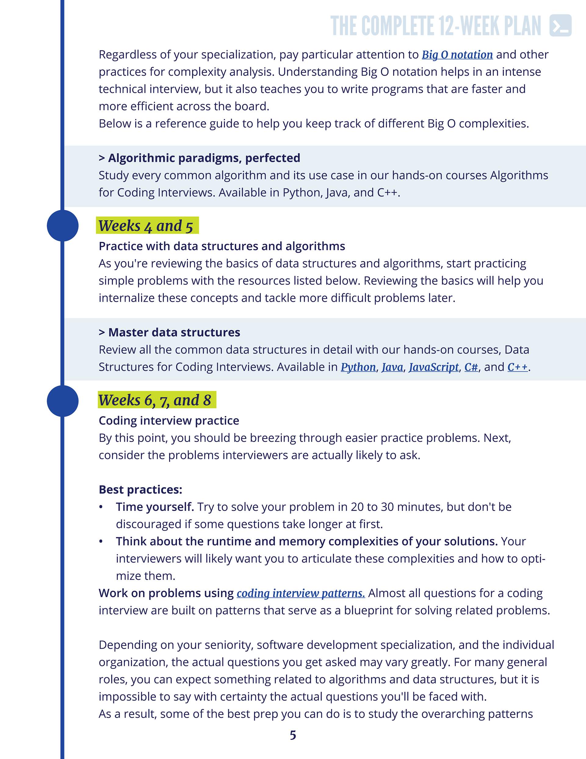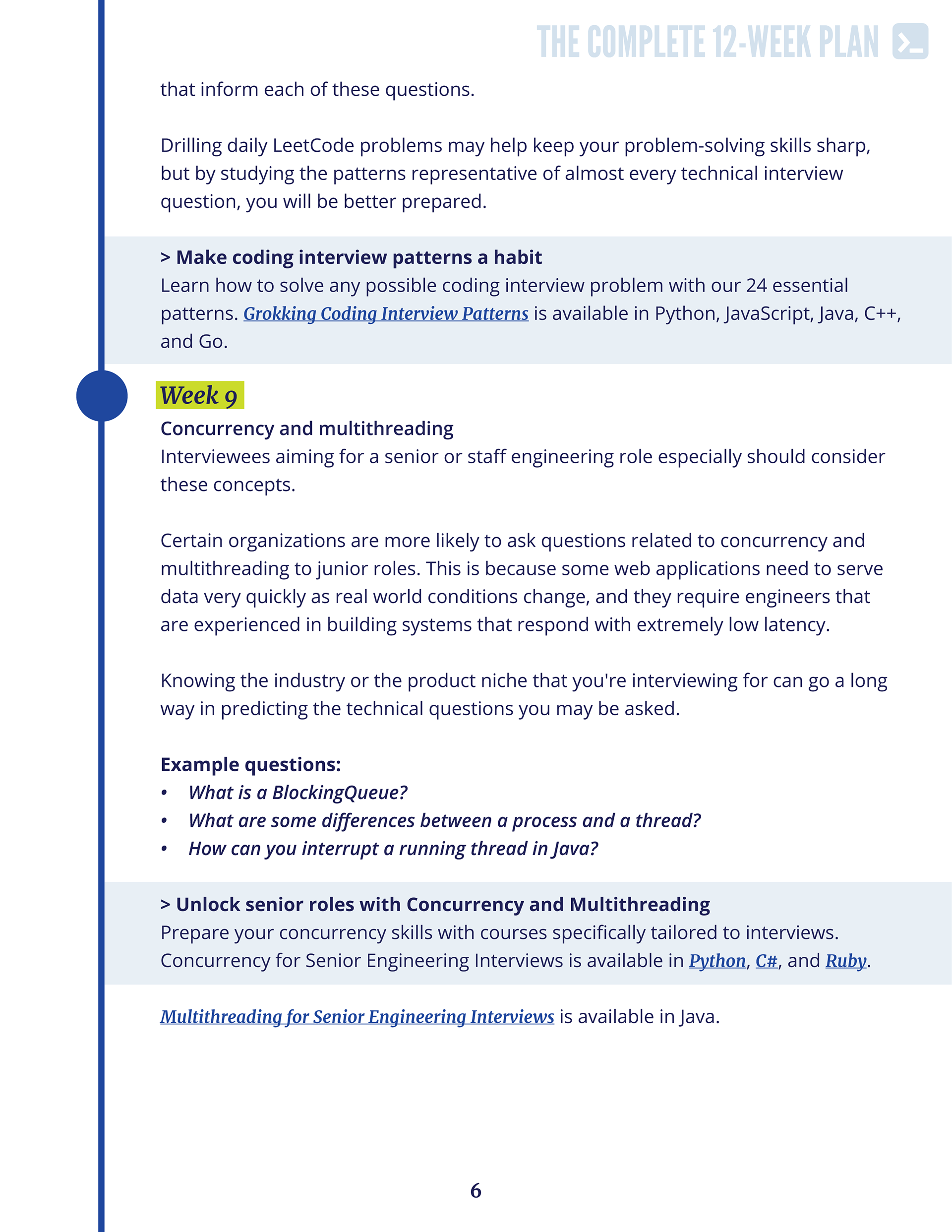 We agreed upon a layout that had an introduction section with data callouts, a brief single page hyperlinked index of resources that could be reused as a single page asset, and a subsequent weekly learning plan breakdown to provide more reading value at the end of the document.